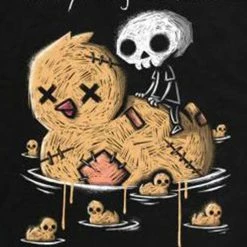 Original hand-drawn artwork of Akumi Ink’s Dead Boy character sitting on a rubber duck just floating. This design symbolizes the mental state of waitingย for this pandemic to be over and for things to go back to “normal.”