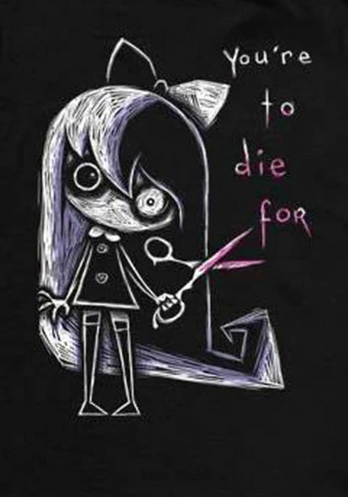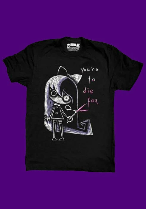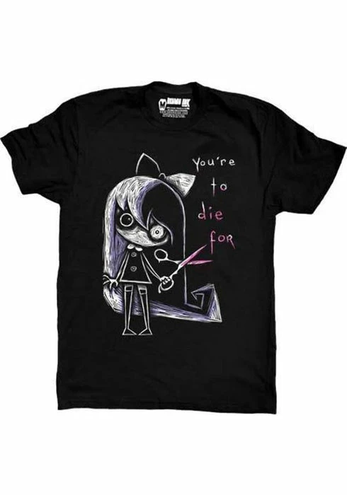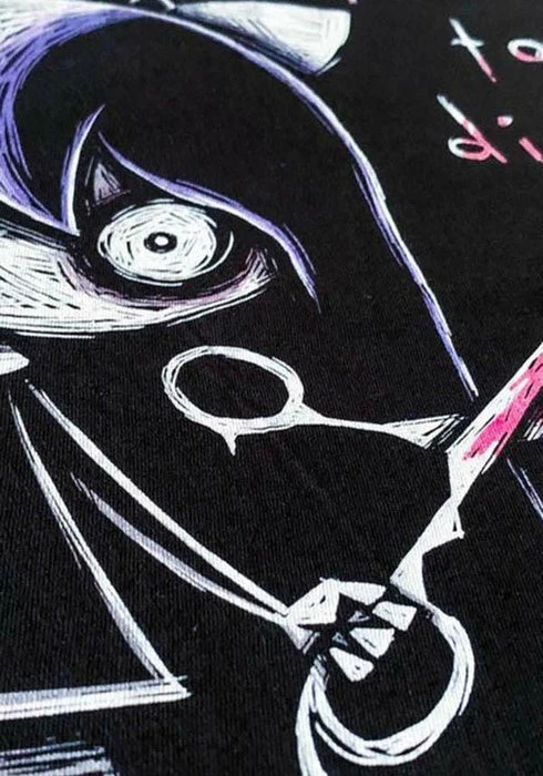 Original hand-drawn artwork of a girl who will do whatever is necessary to get what she wants.ย Featuresย a coffin logo on the back near the neck like a signature on every shirt.