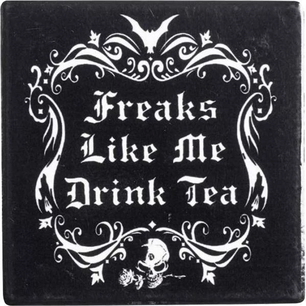 This ‘Freaks like me drink tea’ coaster is perfect for that tea loving friend. Why not team it up with the matching giant teapot coaster baring the same slogan! There are 10, unique Alchemy designed coasters why not collect them all!