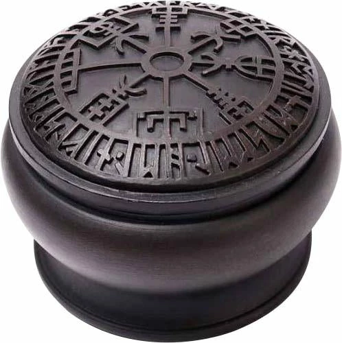 The Nordic stave way finder casket shows the 9 Realms of Asgard, the Viking World. The eight divine worlds that encompass Midgard, the human world, and are named in runic script.
