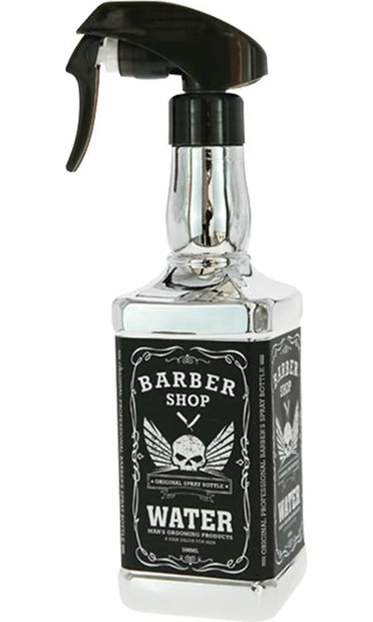 Barber spray bottle with a stylish whiskey bottle look! Featuring superfine vaporization, this bottle will also spray non aerosol hair lacquer and setting lotion.