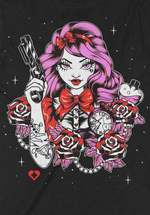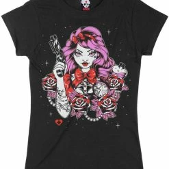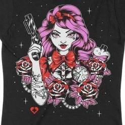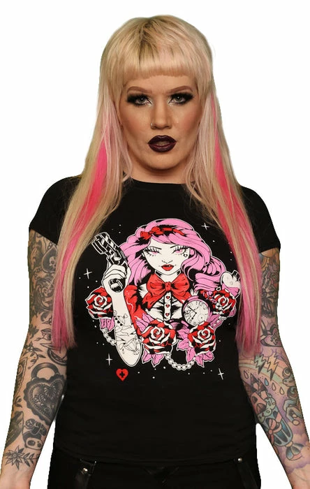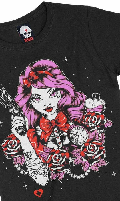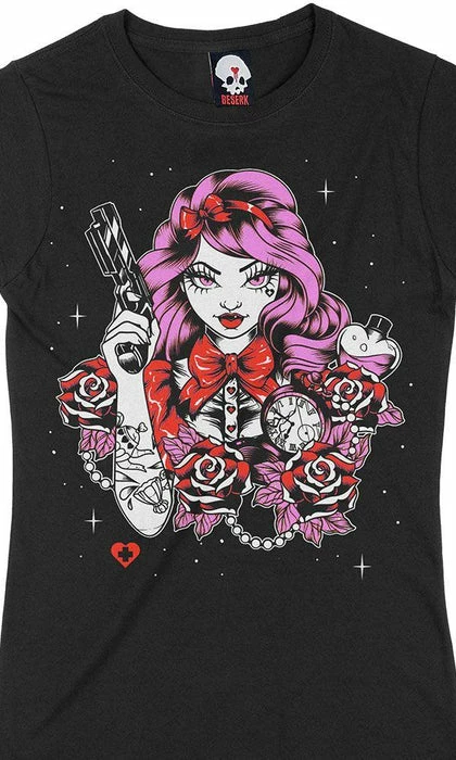 A cute dark design from Beserk Clothing, this top is made from super soft cotton, slim fitting and top quality! Features a bold graphic screen print that is part gothic, part kawaii, and all killer!