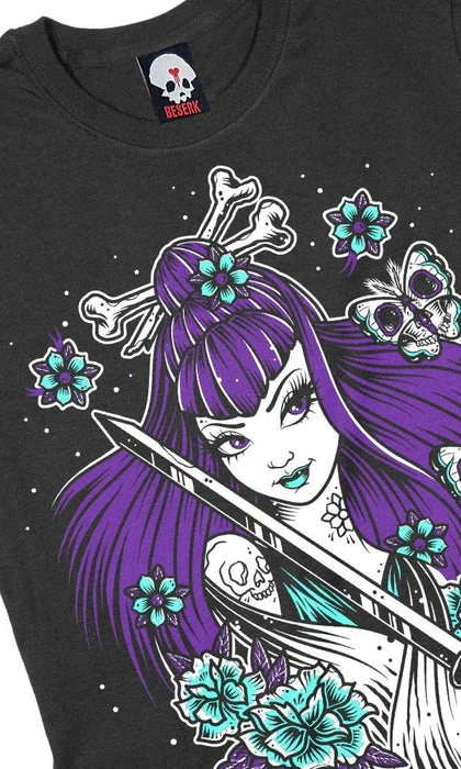 A cute dark design from Beserk Clothing, this top is made from super soft cotton, slim fitting and top quality! Features a bold graphic screen print that is part gothic, part kawaii, and all killer!