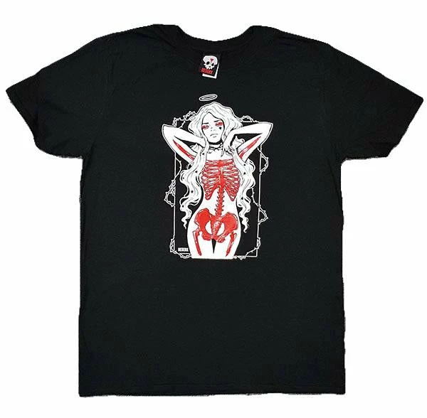 This hauntingly beautiful shirt features a stunning woman embracing love and death.Â