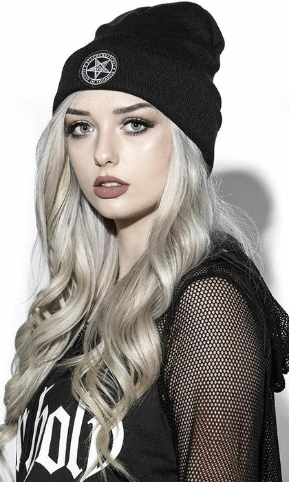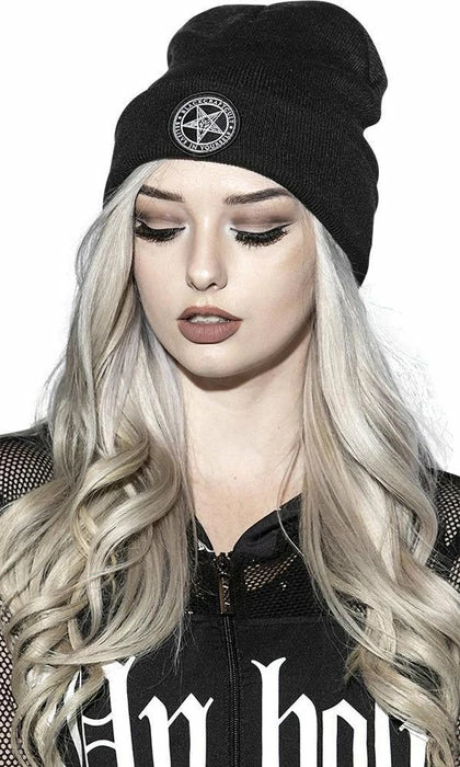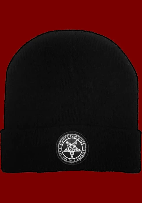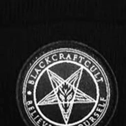 Simple black Blackcraft beanie featuring the logo print sewn into the front lip.Â