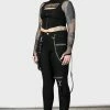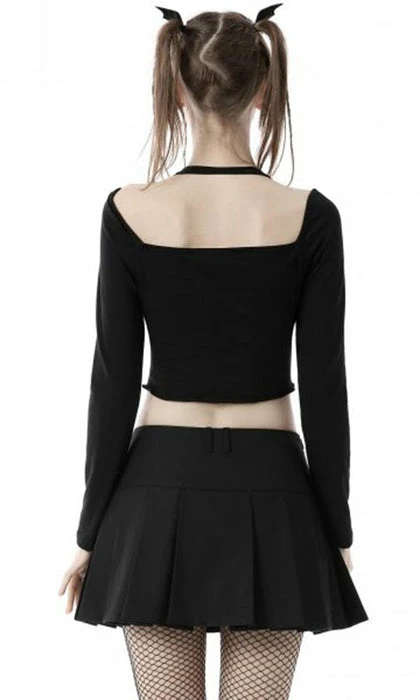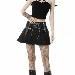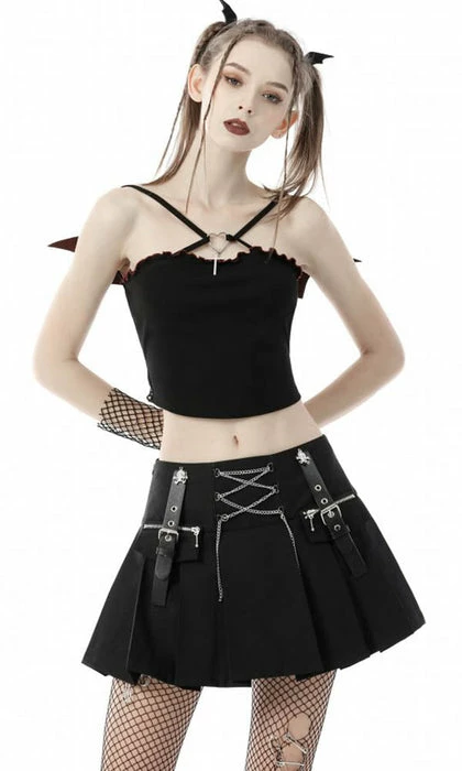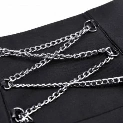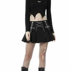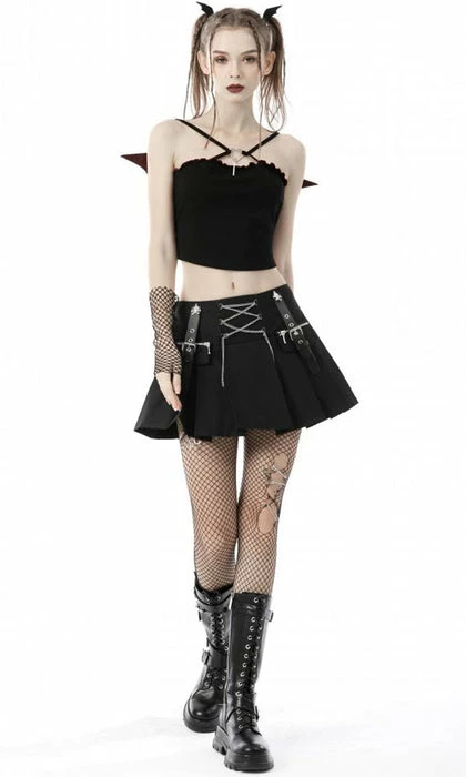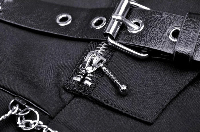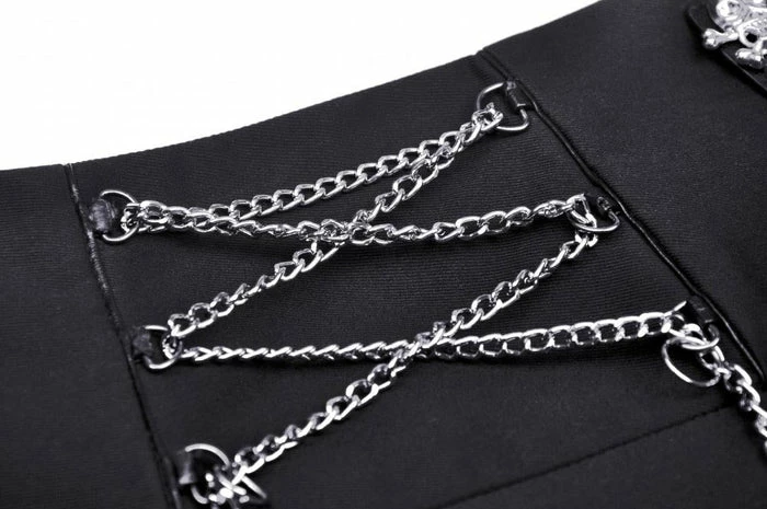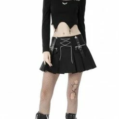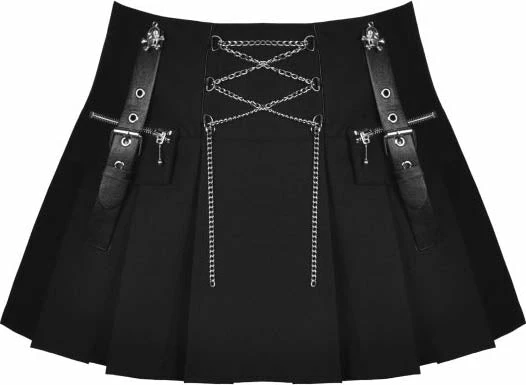 Life’s too short for boring clothes! Make a statement in the Rock Chain Pleated Mini Skirt! Pair with an oversized shirt, fishnets and knee high boots for a grungy goth look.Â