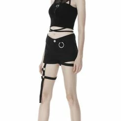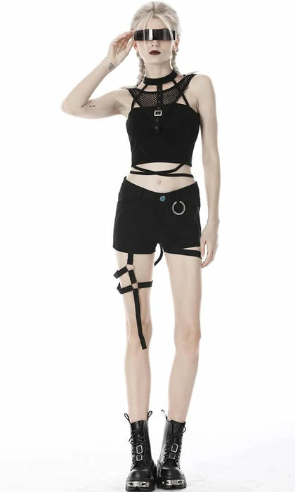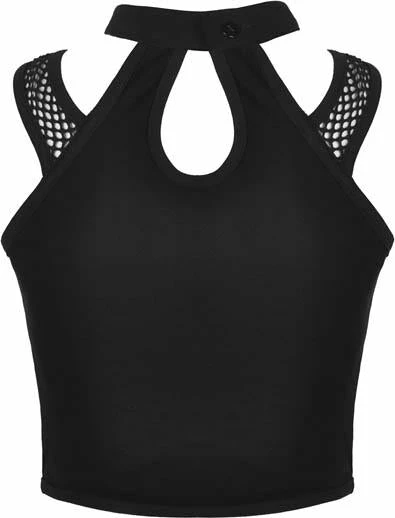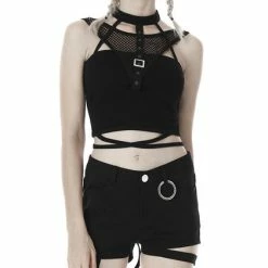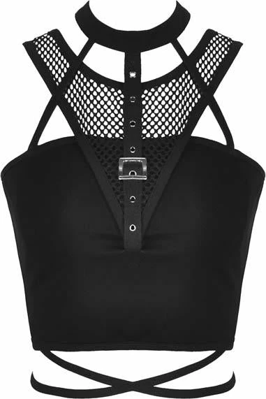 This incredible Splicing crop top is a perfect staple in any dark wardrobe! It features a mesh upper, attached to a collar and punky straps! Add your favourite pleated skirt and boots and you’re ready to dominate!