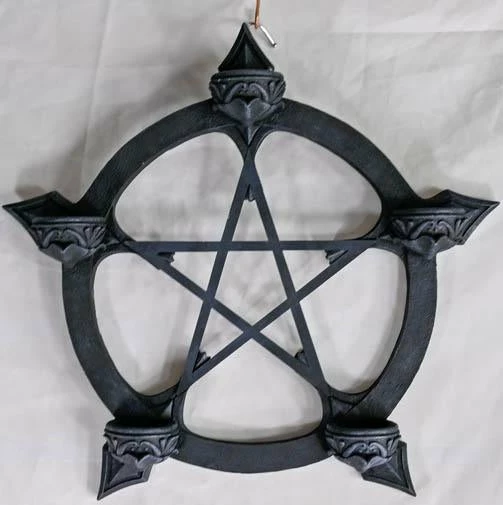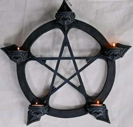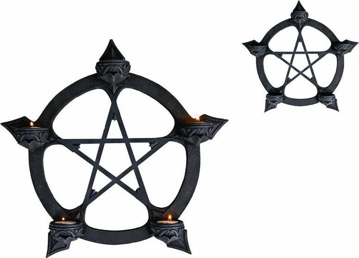This incredible Black Pentagram Tealight Hanger is a great addition to any home! It is designed to be hung against a wall and features 5 tealight holders and a space for incense sticks!