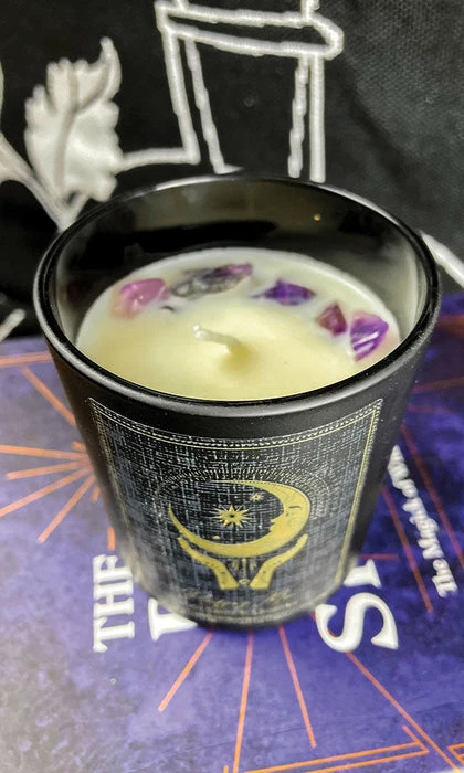 Create a relaxing space with the Esoteric Manifestation Palo Santo & Lavender Candle. Palo Santo and lavender has been used for years in aromatherapy to balance, promote relaxation and ground. It is a wonderful addition to any household or altar.
