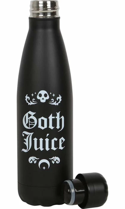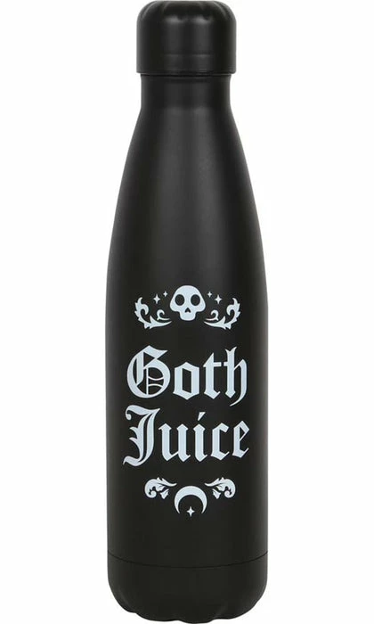 This jet black water bottle features the text ‘Goth Juice’ in gothic themed text. Ideal for gothic lovers, this striking bottle is sure to be perfect for everyday use!