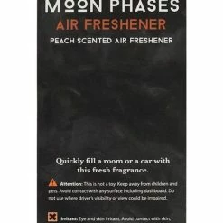 This moon phase air freshener has the scent of juicy peach and is perfect for hanging in the car or in a room to create a fresher atmosphere. Printed with moon phases on a faux wood background.