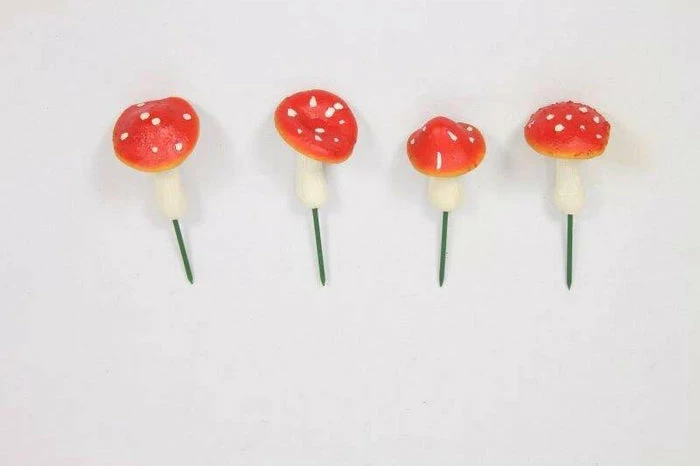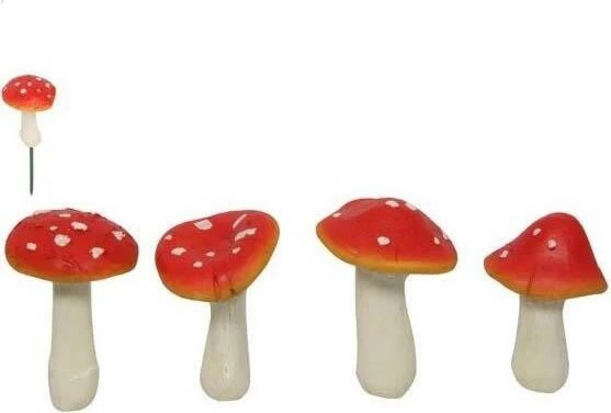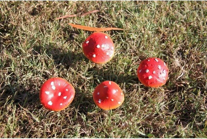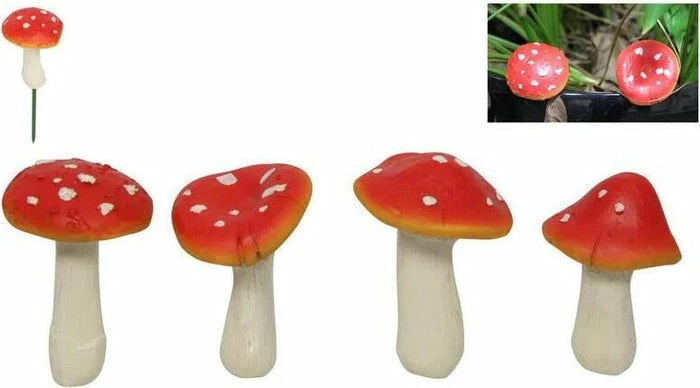 These realistic fairy garden mushrooms have a natural finish with a red and orange coloured hue. Inclusive of a stake, these mushrooms will easily be placed in the ground.Â