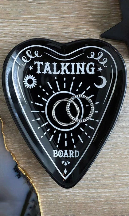 This ceramic trinket dish is inspired by a classic talking board planchette and is the perfect size for holding jewellery and other small accessories.