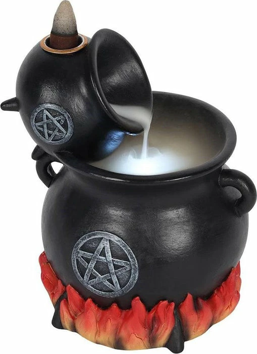 Place a backflow incense cone on top of this resin cauldron burner and watch the smoke gently pour between cauldrons. Accented by flames and a distressed silver-effect pentagram design and finished with a light to create an outstanding smoke effect.