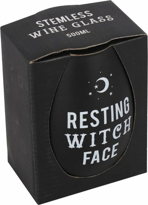 This frosted black stemless wine glass features the words ‘Resting Witch Face’ and is part of our exclusive Black Magic collection designed for sassy and strong women. The glass comes presented in a matching cardboard box.Â