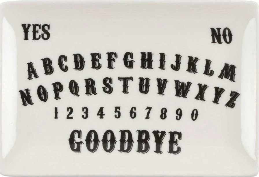 This magical white ceramic dish features a contrast black spirit board inspired print with a matching black outline. Perfect for keeping your talismans and protection crystals safe in one spot or just as a decoration, this dish is a must-have for any witch!