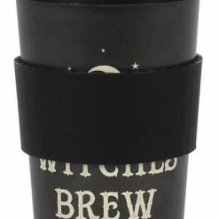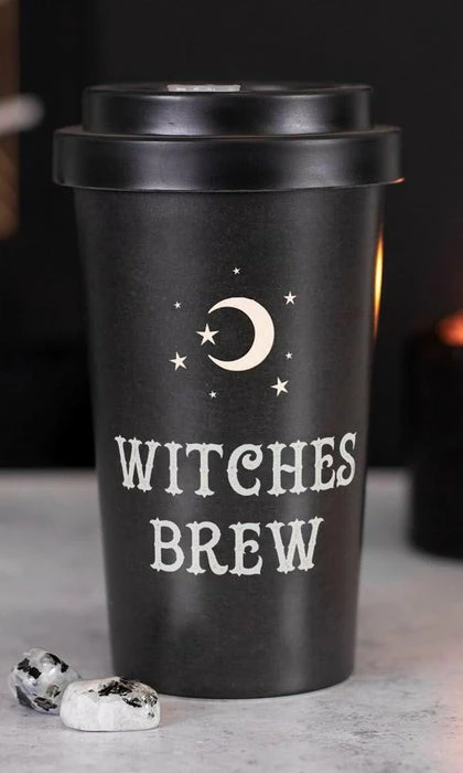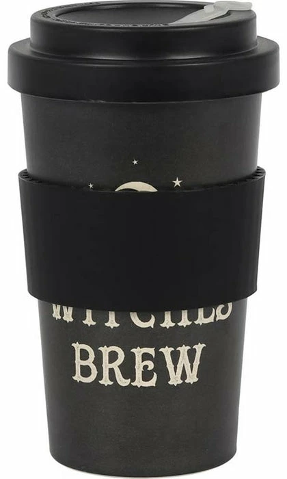 This eco-friendly, reusable travel mug is made out of durable bamboo fibre and comes with a matching silicone sleeve and lid for keeping hydrated (and caffeinated) on the go. This gothic style features ‘Witches Brew’ text under a crescent moon and star design and also includes a convenient stopper to prevent accidental spills.