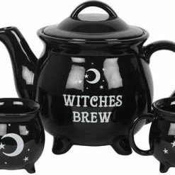 This spooky cute Witches Brew Teapot hold multiples cups of tea! A matching set of four cauldron tea cups finishes off this mystical tea set that’s sure to catch everyone’s eye.ย