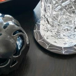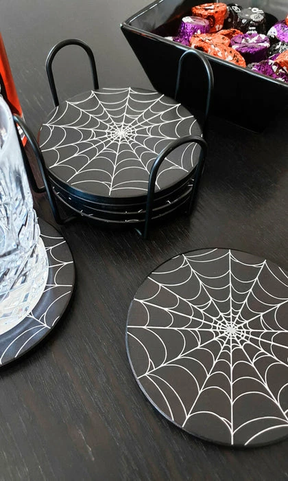 The set includes 6 round coasters, each with its own spider web design. The attention to detail in the design is sure to impress your guests and create a haunting ambiance in your home.
