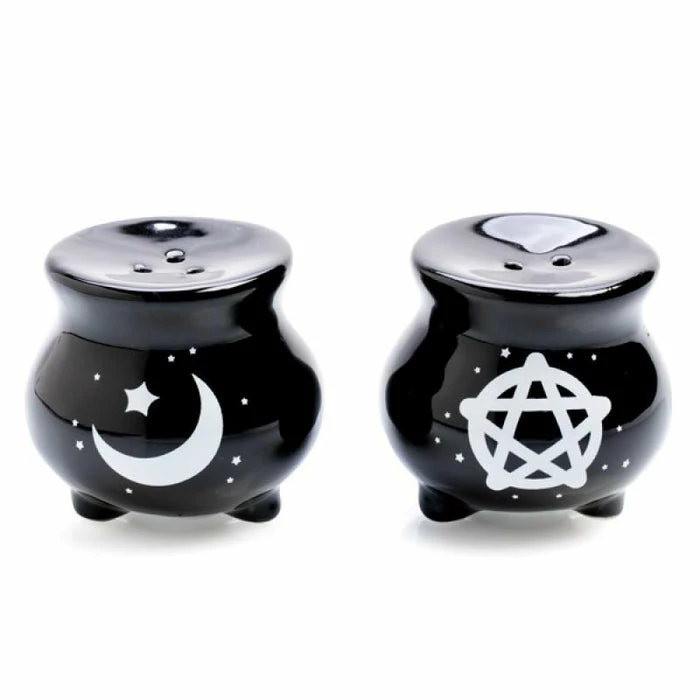 Shakers feature different designs (pentacle & crescent moon) to easily tell them apart
