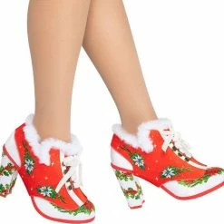 Say what you like…. but don’t say I am late to Christmas dinner! Get your knife and fork ready to dig into these delicious white patent finish mid heels, decorated with everyone’s faves from Christmas Feasts – glazed ham, and a big beautiful pie…. all gilded in golden glitter. Get your feast on!