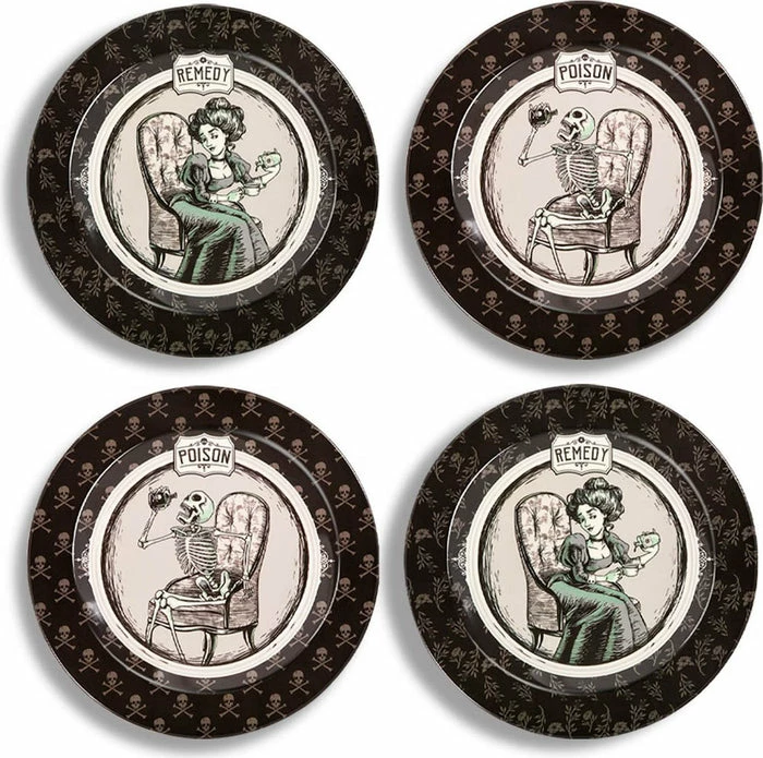 Includes:Â Set of 4 BPA Free Melamine Plates printed with glorious, famous and infamous HCD graphic artistry!