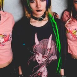 Let this Chrysalis oni take over and haunt your hallucinations. Pair with skinny jeans and chunky boots for an edgy street vibe.