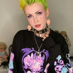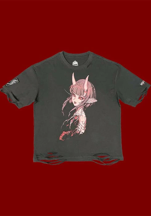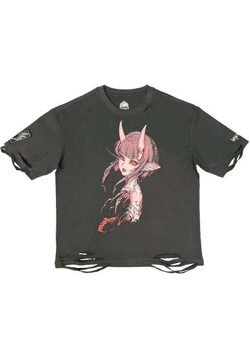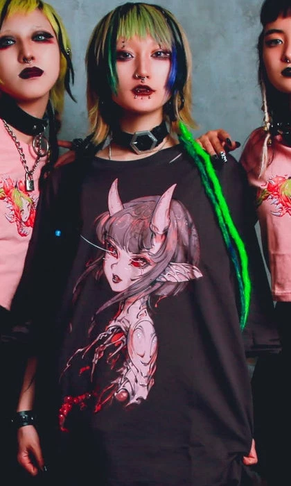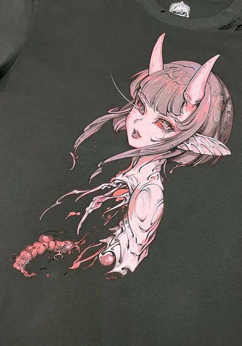 Let this Chrysalis oni take over and haunt your hallucinations. Pair with skinny jeans and chunky boots for an edgy street vibe.