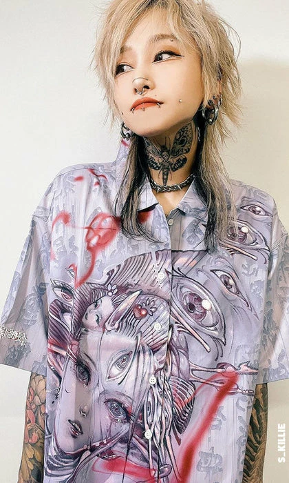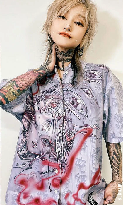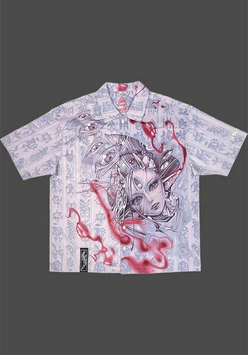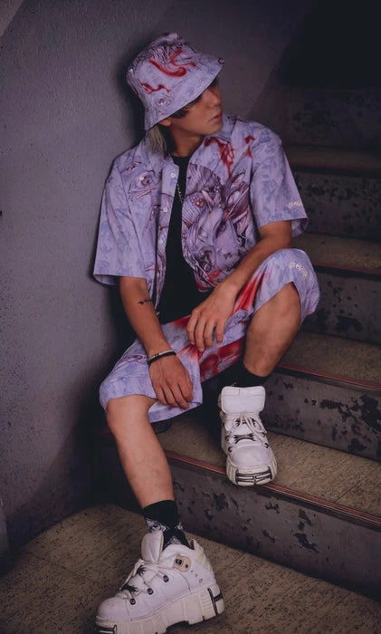 This Nakakubi Button Down Shirt is the haunting addition to our wardrobe that we have all been waiting for. Pair with the matching Namakubi Shorts and bucket hat to complete the look.