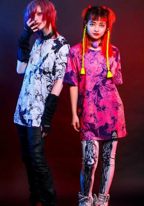 Stand out from the rest in the Rokuroku shirt. Pair with a mini skirt or skinny jeans and chunky boots for a head turning look.