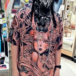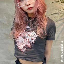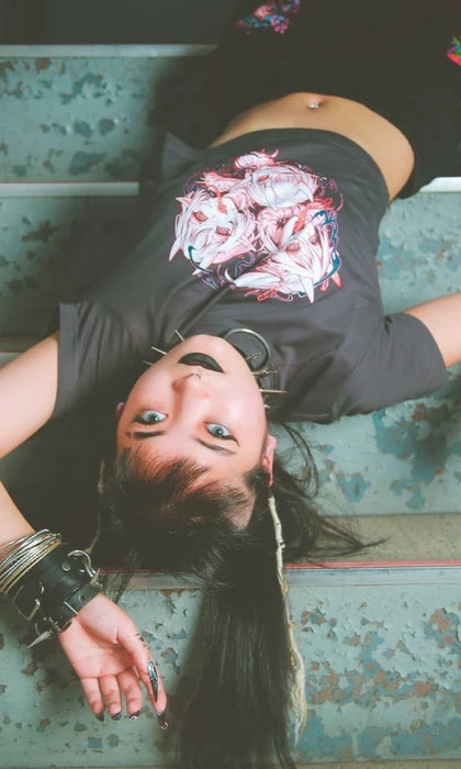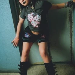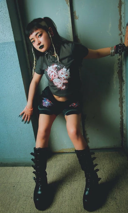 Let these oni take over and haunt your hallucinations. Pair with skinny jeans and chunky boots for an edgy street vibe.