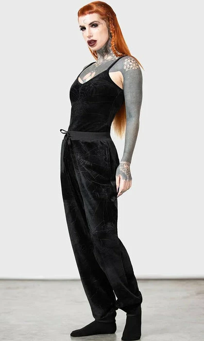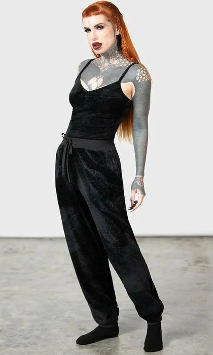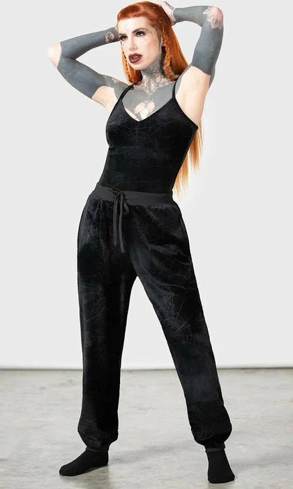 Super chill and ready to kill. Take your casual looks to the next level with the effortlessly cool Arachno Rest joggers; featuring cuffed legs, super soft velour and a deadly black on black web detail. These joggers will have you ready to go from the cruising the streets, to snoozing in your sheets.Â