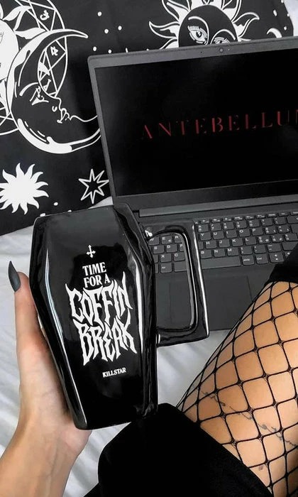 Drinking coffee to make mortals bearable since 1819. In a coffin shape, large in size and spooky print – good enough for even Dracula himself!