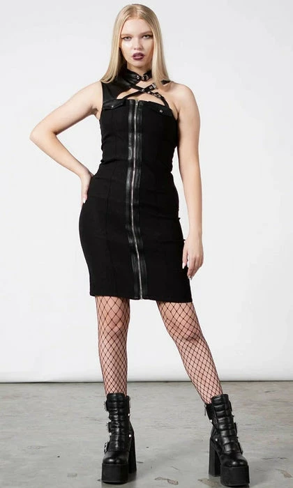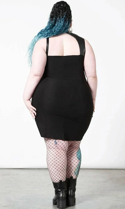 Put the fun in fun-eral with the ‘Mercy Me’ midi dress. Channeling an urban vibe with its figure-hugging fit, constructed of woven stretch fabric for ultimate feel and comfort. With a high neck, front zip and statement strap across the chest. Fits like a glove – purrfect for date night, parties or just your daily/nightly adventures.