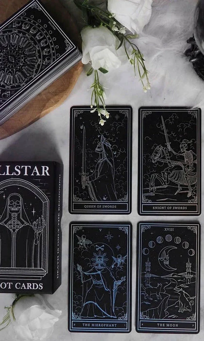 The future is looking bright! These Tarot Cards are a MUST in any dark soul’s home. Custom design to make them extra special, holographic print and branded, perfect for daily readings or as decor!