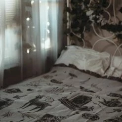 Can be used as a blanket, wall tapestry, ceiling & walls for building a fort, a slightly weighted ghost costume/covering, a shield from the dew droplets on the ground as you sit and have a snazzy picnic amongst other creatures, a baby blanket for a very large child, an invisible cloak if you believe hard enough, etc.