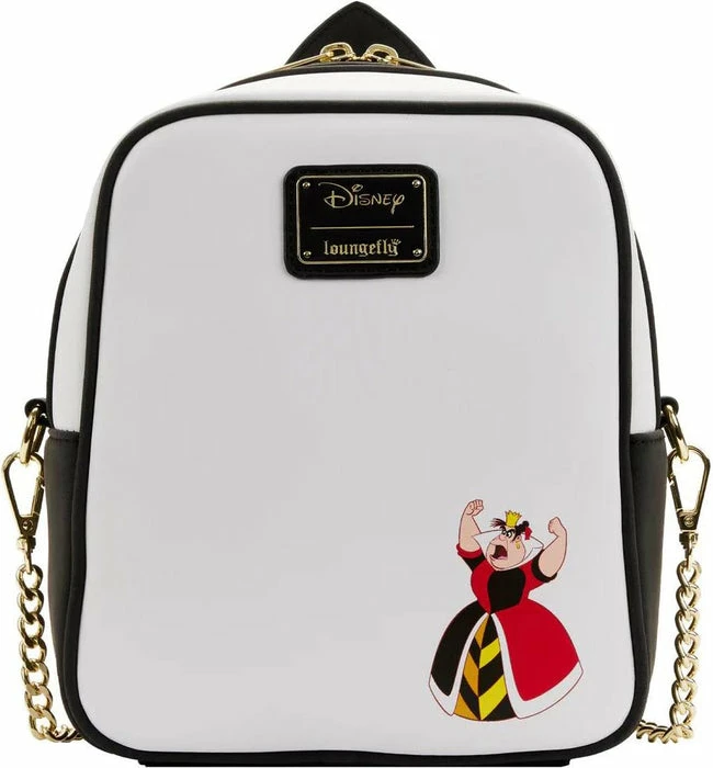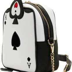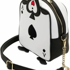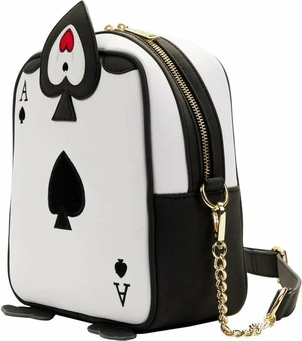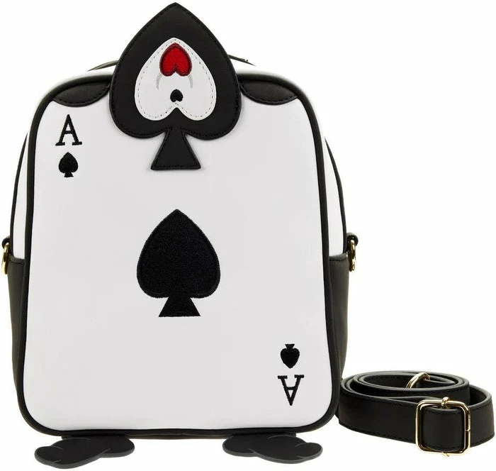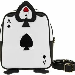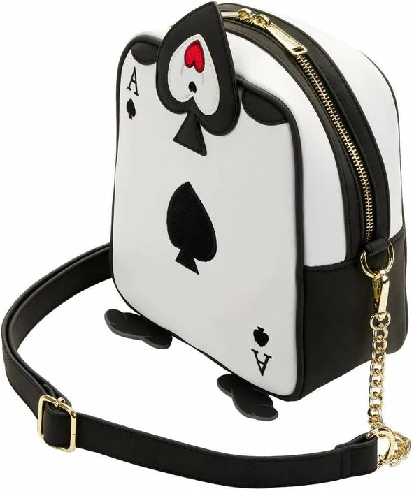 The Queen of Hearts has sent one of her card soldiers to infiltrate your Alice In Wonderland collection as the figural, Alice in Wonderland Ace of Spades Crossbody Bag! The Card Soldier himself is on his feet, awaiting the command of the Queen of Hearts- who can be seen shouting on the back of the bag. Featuring a detachable chain shoulder strap which can be adjusted to fit your preferred wearing length. The Ace of Spades Crossbody bag is a commanding presence for any Alice In Wonderland collection.