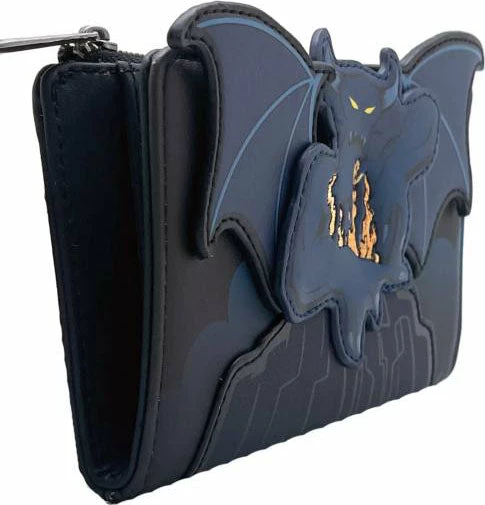 Featuring a terrifyingly marvelous front Chernabog applique with grand, a fearsome flame embroidered detail on a smooth vegan leather base of the Bald Mountain, this wallet is designed with a spooktacular damask style lining that has multiple card slots and clear window pocket, zipper coin pocket and flap snap style closure. When the sun goes down and the misfits have come out to rave and play, let Chernabog’s glowing eyes light the way!