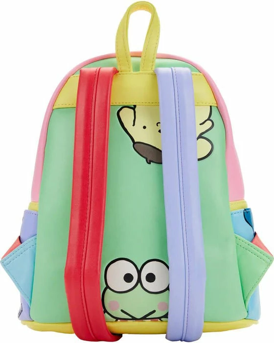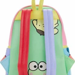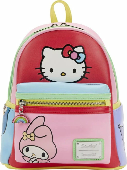 Bring your favorite characters with you wherever you go! The Loungefly Hello Kitty and Friends Color Block Mini Backpack offers a fun and stylish way to travel with your favorite Sanrio friends. On the front, My Melody greets you on the zipper pocket while Hello Kitty peers out from above. Kuromi and Tuxedosam appear on the bag’s side pockets, while Pom Pom Purin and Kero Kero Keroppi wave hello on the back. The bright color blocked panels and rainbow enamel zipper charm make this accessory a cute and cheery addition to any outfit.