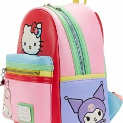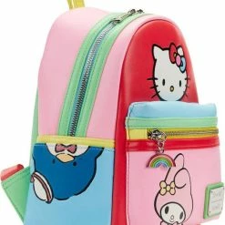The Loungefly Hello Kitty and Friends Color Block Mini Backpack is made of vegan leather (polyurethane). Bag has adjustable shoulder straps and sturdy metal hardware. Additional features include printed and debossed details. Take note of the coordinating inside lining.