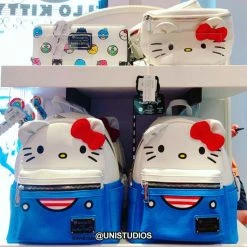 Kitty White takes the shape of this mini backpack, complete with her adorable ears that poke out! Her adorable face and whiskers peek out over the front zipper compartment made to look like her iconic outfit in embroidered detail, while her signature red hair bow tops off the look. With two side pockets, adjustable shoulders straps and a carry handle, this simple and stylish backpack is the perfect embodiment of Sanrio’s most beloved character and the cutest accessory to show off your Hello Kitty fandom!