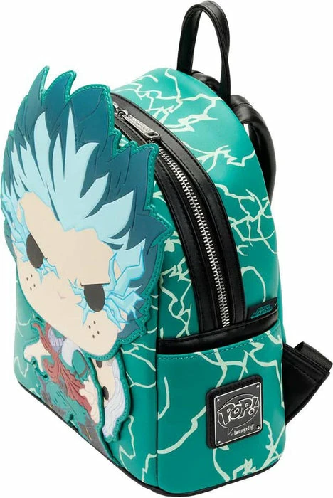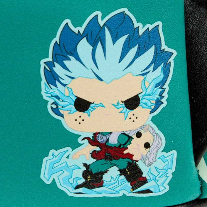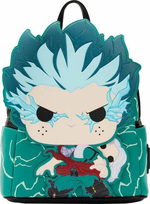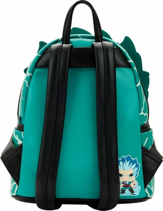 Smash it! Carry this Funko Pop! by Loungefly My Hero Academia Deku Glow Infinity Cosplay Mini Backpack to win the day. Whether you’re heading off to hero training or just packing a few things to power through, this backpack allows you to never give up, Deku style. On the front, Deku comes to life in applique detail, his hair rising up over the top. Behind him, Eri gives him strength, and she moves—popping in an out of view as a moveable applique! Flashes of lightning surround him as he uses One for All, and the details wrap around the side pockets. In the dark, the light blue lightning glows. On the back, Deku and Eri make an encore appearance. It’s the perfect accessory for packing everything a Pro Hero needs—or for transforming everyday outings into extraordinary adventures. This backpack is an officially licensed My Hero Academia product.