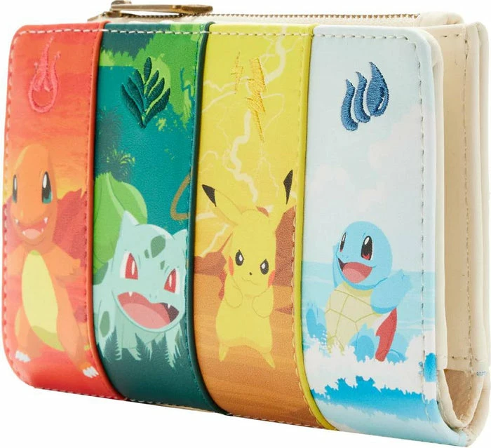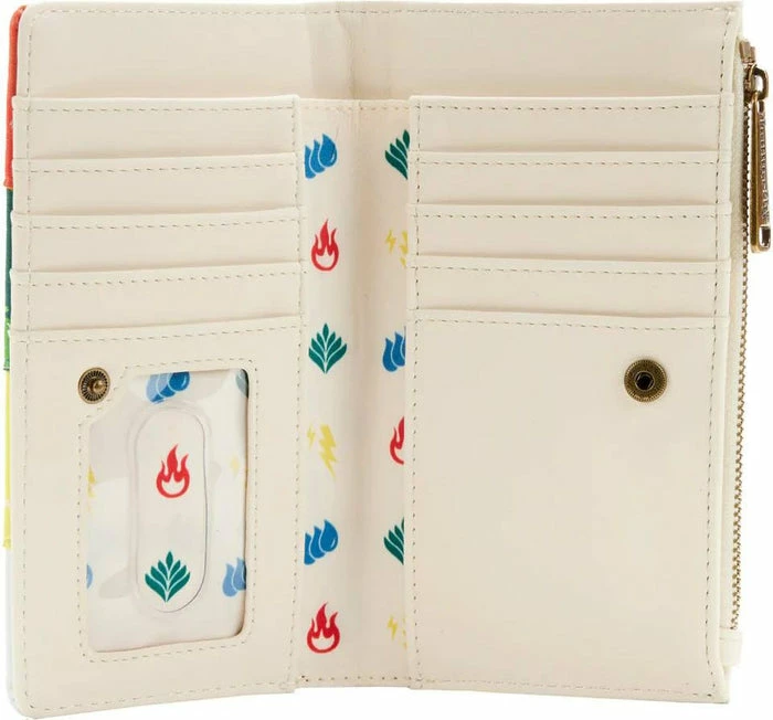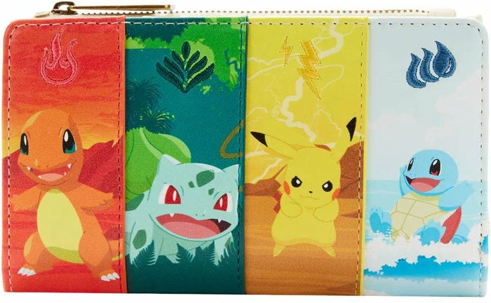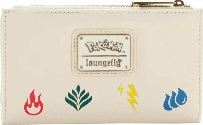 Showcase your training skills with the Loungefly Pokémon™ Elements Flap Wallet! The front of this wallet displays four unique types of Pokémon: fire, grass, electric, and water. Turn the wallet over and you will find embroidered symbols matching each of the types. With seven slots for holding cards and a clear slot to hold your ID, this wild accessory has plenty of room to carry your gear as you work towards your dream of becoming a Trainer.