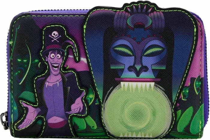 Conjure up a few friends from the other side to help carry you through the day with this The Princess and the Frog Dr. Facilier Zip Around Wallet. On the front, Dr. Facilier stands before the Voodoo Spirit World, its mouth open wide, the portal glowing green with glow-in-the-dark details. The Voodoo Spirit’s eyes also glow green in the dark. On the back, Dr. Facilier and his shadow conspire. This accessory complements any Disney outfit and is perfect for Disney fans wishing to keep their favorite animated moments close.