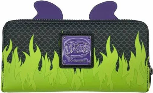 On the front of this wallet, Maleficent as the iconic dragon comes to life with custom-shaped applique and vibrant colours. Her black scales cover the body of the wallet and on the back, a wall of green flames roars.