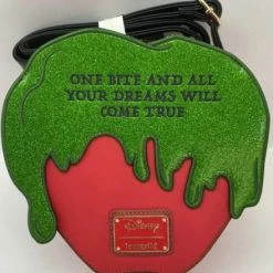 The Poison Apple 8” Faux Leather Crossbody Bag by Loungefly is here – inspired by a special sort of death for one so fair.