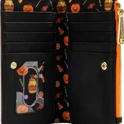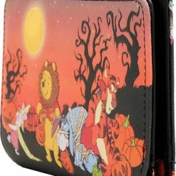 The Loungefly Winnie the Pooh Halloween Group Flap Wallet is made of vegan leather (polyurethane). Wallet includes 7 slots for holding cards, a clear slot for holding ID, and plenty of snaps and zippers to keep your belongings safe. Please note: Due to the nature of all-over print designs, patterns may vary. Take note of the coordinating inside lining.