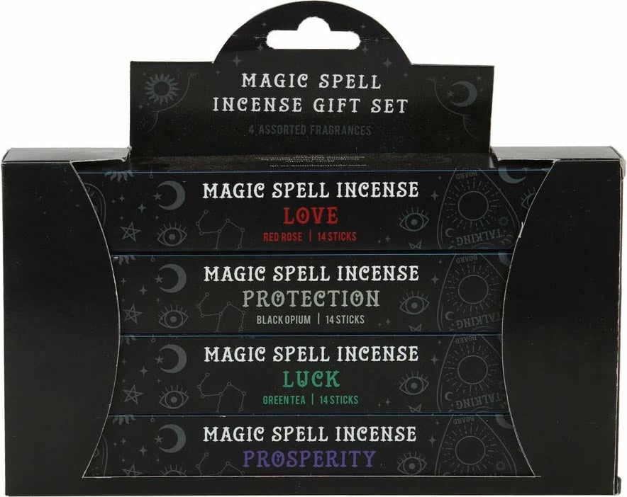 This magic spell incense gift set includes 4 individual packs of incense sticks perfect for spell work, altars and everyday enjoyment.