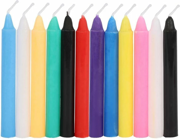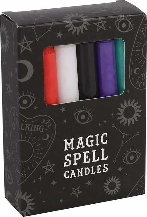 Pack of 12 mixed spell candles containing the colours;