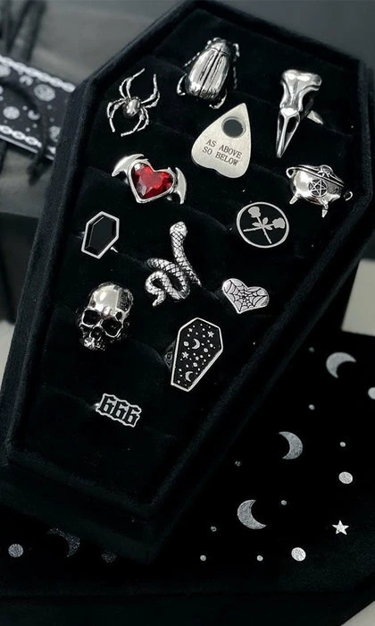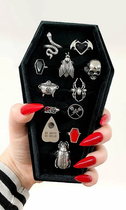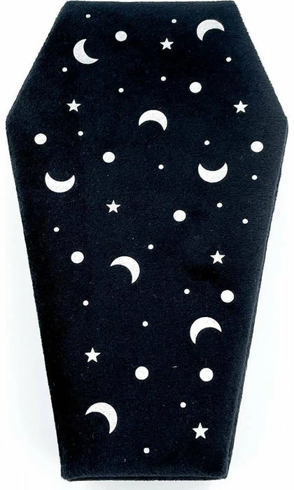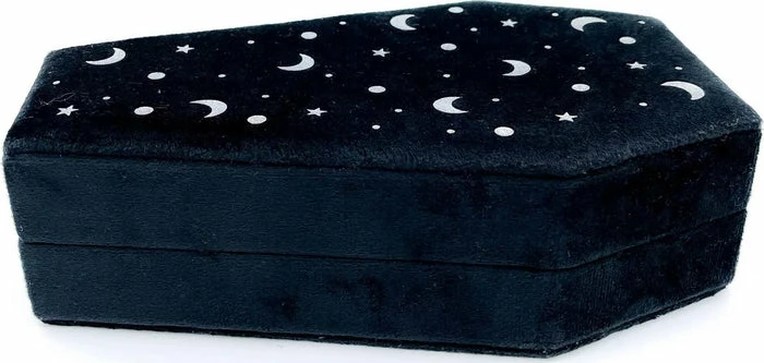 The heavens are calling you with the Cosmic Coffin ring tray! Protect and safely hold between 18 & 20 rings (depending on ring size).Â